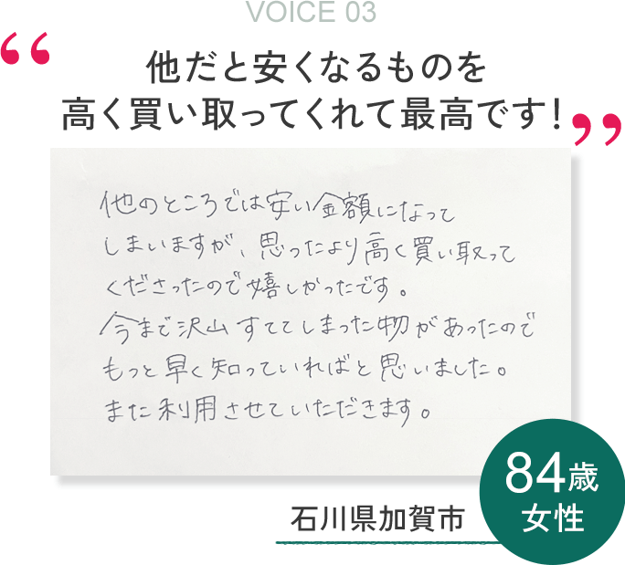 どの地域まで北陸全域全域で出張買取に伺っております。まずはお気軽にご相談ください。