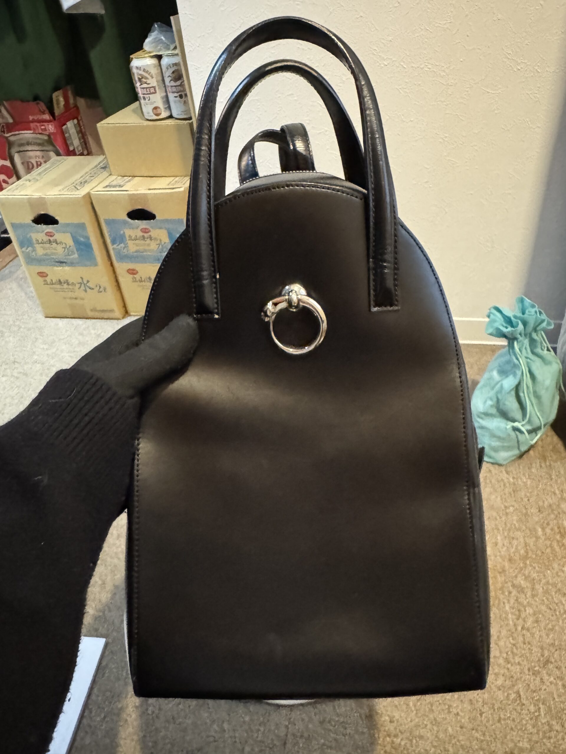 今回のカルティエバッグは、シンプルで上品なブラックレザーに、カルティエらしい金具デザインが印象的なお品物でした。