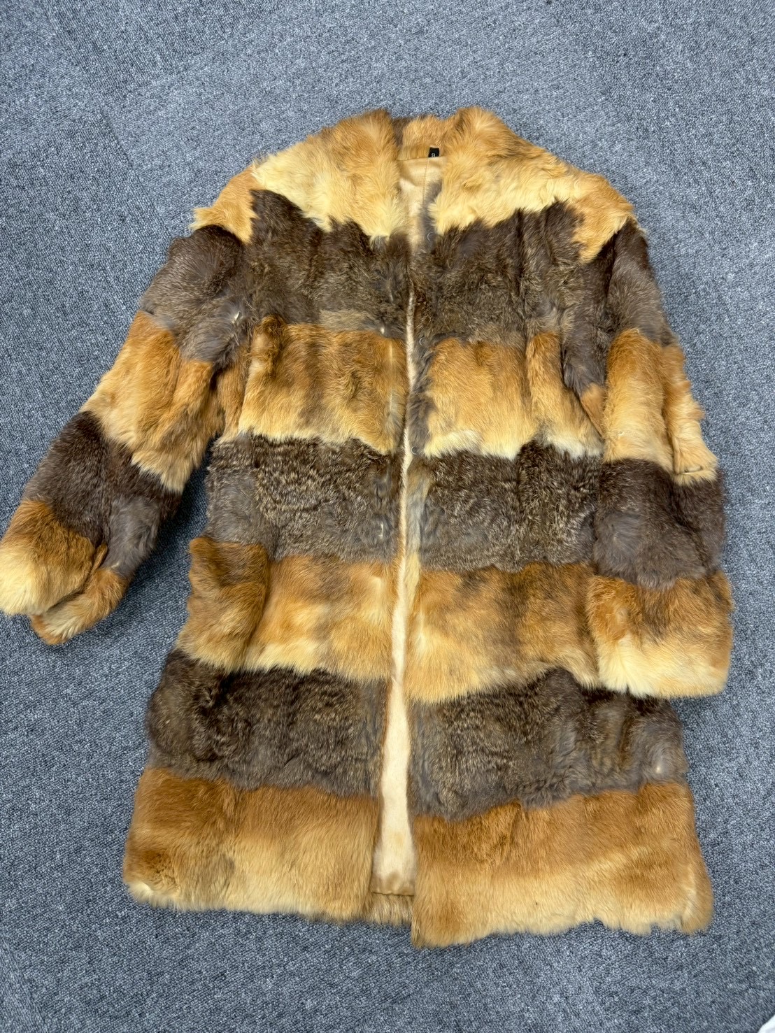 今回お買取りしたお品物は、複数の毛皮を使用したデザイン性の高い毛皮コートです。